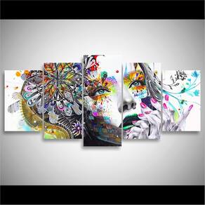 Quadro decorativo Mulher Abstrato Mosaico 5 Peças Sala Hall