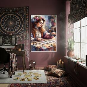 Quadro Decorativo Mulher Cigana Cartomante - 70x50cm - Cor: Moldura Preta