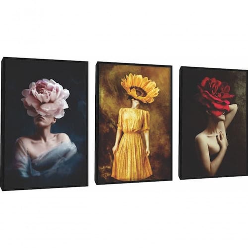 Quadro Decorativo Mulher Com Flor Com Moldura Preto