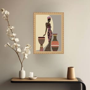 Quadro decorativo mulher negra tambor e vaso 24x18cm - com vidro Cor: moldura preta Informações do produto tire todas as suas dúvidas no descritivo abaixo: decoração para quarto, sala, cozinha, escritório, área gourmet e muito mais. Chega de paredes vazias medidas - cada peça tem 24x18cm a5 . Material do papel - papel fotográfico brilhante de altíssima resolução acabamento - todos os quadros são acompanhados de vidro para proteção da imagem. - moldura em madeira maciça na cor preta ou branca conforme produto escolhido e pendurador . - os quadros são embalados de forma segura com plástico bolha com camada dupla de acordo com o tamanho dos quadros. Garantia - garantia de 3 meses. Meu quadro chegou. Como posso fixá-lo Você precisa apenas de um martelo e um prego, pois os quadros já vão acompanhados de penduradores. Esta é a forma mais indicada. Como posso limpar meu quadro A limpeza é feita como um móvel comum da sua casa. Apenas um pano seco ou espanador são suficientes para tal