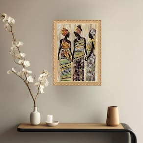 Quadro decorativo mulheres negras 33x24cm - com vidro Cor: moldura branca Informações do produto tire todas as suas dúvidas no descritivo abaixo: decoração para quarto, sala, cozinha, escritório, área gourmet e muito mais. Chega de paredes vazias medidas - cada peça tem 33x24cm a4 . Material do papel - papel fotográfico brilhante de altíssima resolução acabamento - todos os quadros são acompanhados de vidro para proteção da imagem. - moldura em madeira maciça na cor preta ou branca conforme produto escolhido e pendurador . - os quadros são embalados de forma segura com plástico bolha com camada dupla de acordo com o tamanho dos quadros. Garantia - garantia de 3 meses. Meu quadro chegou. Como posso fixá-lo Você precisa apenas de um martelo e um prego, pois os quadros já vão acompanhados de penduradores. Esta é a forma mais indicada. Como posso limpar meu quadro A limpeza é feita como um móvel comum da sua casa. Apenas um pano seco ou espanador são suficientes para tal