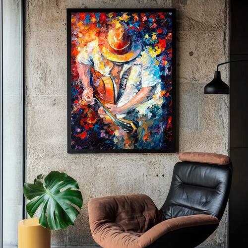 Quadro Decorativo Músico Estilo Pintura Borda Infinita - 118x78cm -