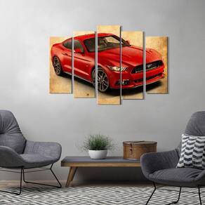 Quadro Decorativo Mustang Vintage Vermelho 5 Peças Para Sala As paredes ganham cor e vida com quadros e painéis decorativos. Um quadro super grande combina com qualquer ambiente. Impresso em tecido canvas semelhante o tecido de quadros de pintura E montado em bastidor de madeira. Com grampos por trás do quadro para melhor acabamento. Dimensão total do quadro neste anuncio 70cm altura por 100cm comprimento ,e a espessura 2 cm. Medidas de cada peça: 20x50 / 20x60 / 20x70 / 20x60 /20x50 Ean: 7908245610202