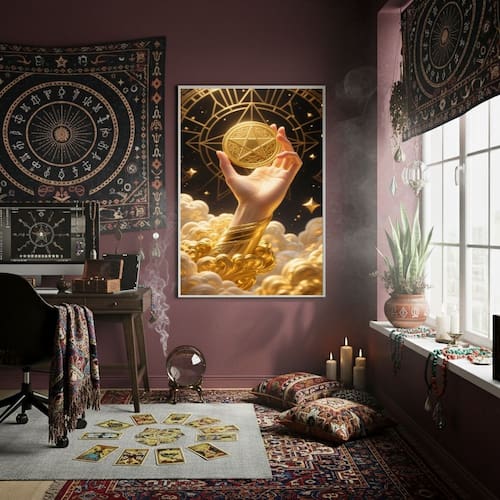 Quadro Decorativo Naipe de Ouros no Tarot - 70x50cm - Cor: Moldura Branca