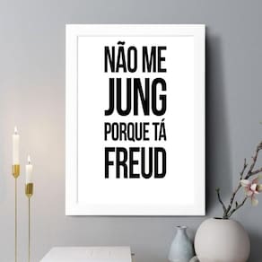 Quadro decorativo não me jung porque tá freud 24x18cm Cor: moldura branca Informações do produto tire todas as suas dúvidas no descritivo abaixo: decoração para quarto, sala, cozinha, escritório, área gourmet e muito mais. Chega de paredes vazias medidas - cada peça tem 24x18cm a5 . Material do papel - papel fotográfico brilhante de altíssima resolução acabamento - todos os quadros são acompanhados de uma película de acetato para proteção da imagem. - os quadros são embalados de forma segura com plástico bolha com camada dupla de acordo com o tamanho dos quadros. Garantia - garantia de 3 meses. Meu quadro chegou. Como posso fixá-lo Você precisa apenas de um martelo e um prego, pois os quadros já vão acompanhados de penduradores. Esta é a forma mais indicada. Caso prefira, você pode utilizar uma fita dupla face neste caso, sugerimos de alta qualidade para evitar que descole e seu quadro caia . Como posso limpar meu quadro A limpeza é feita como um móvel comum da sua casa. Apenas um pano seco ou espanador são suficientes para tal