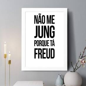 Quadro decorativo não me jung porque tá freud 45x34cm - com vidro Cor: moldura branca Informações do produto tire todas as suas dúvidas no descritivo abaixo: decoração para quarto, sala, cozinha, escritório, área gourmet e muito mais. Chega de paredes vazias medidas - cada peça tem 45x34cm a3 . Material do papel - papel fotográfico brilhante de altíssima resolução acabamento - todos os quadros são acompanhados de vidro para proteção da imagem. - moldura em madeira maciça na cor preta ou branca conforme produto escolhido e pendurador . - os quadros são embalados de forma segura com plástico bolha com camada dupla de acordo com o tamanho dos quadros. - de 3 meses. Meu quadro chegou. Como posso fixá-lo Você precisa apenas de um martelo e um prego, pois os quadros já vão acompanhados de penduradores. Esta é a forma mais indicada. Como posso limpar meu quadro A limpeza é feita como um móvel comum da sua casa. Apenas um pano seco ou espanador são suficientes para tal Marca: Não Informado