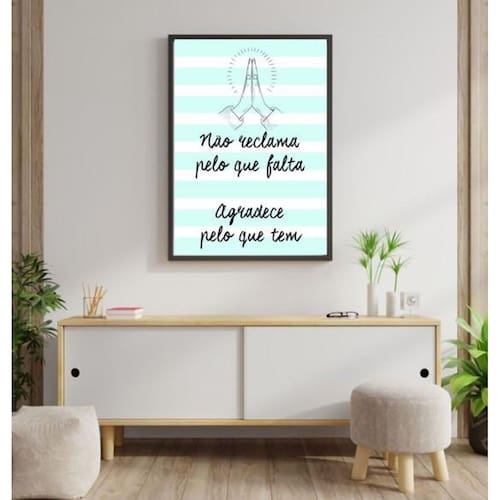 Com o Quadro Decorativo da Quadros On-Line você transforma a decoração do seu ambiente, com beleza e bom gosto. Preencha aquela parede vazia com um quadro de alta qualidade, papel fotográfico brilhante de altíssima resolução e moldura em madeira maciça. Para maior proteção, a peça ainda conta com uma película de acetato. Características: - Papel fotográfico brilhante de altíssima resolução - Película de acetato para proteção da imagem - Moldura em madeira maciça - Pendurador móvel que pode ser retirado facilmente - Pode ser fixado com fita dupla face Especificações técnicas Marca: Quadros On-Line Modelo: Não Reclama Pelo Que Falta Material: Papel fotográfico brilhante Acabamento: Película de acetato Moldura: Madeira Cor moldura: Preto Tamanho: 45 x 34 cm - A3 Fixação: Prego ou fita dupla face de alta qualidade Acompanha pendurador: Sim : 3 meses Dica de limpeza A limpeza é feita como um móvel comum da sua casa. Apenas um pano seco ou espanador são suficientes para tal.