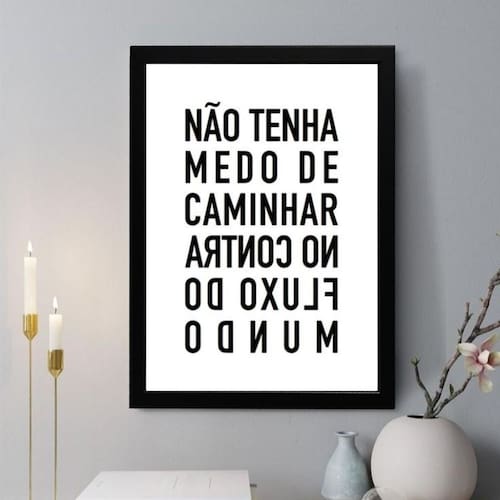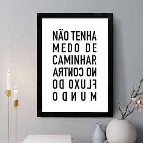 Quadro decorativo não tenha medo de caminhar 33x24cm Cor: moldura preta Informações do produto tire todas as suas dúvidas no descritivo abaixo: decoração para quarto, sala, cozinha, escritório, área gourmet e muito mais. Chega de paredes vazias medidas - cada peça tem 33x24cm a4 . Material do papel - papel fotográfico brilhante de altíssima resolução acabamento - todos os quadros são acompanhados de uma película de acetato para proteção da imagem. - os quadros são embalados de forma segura com plástico bolha com camada dupla de acordo com o tamanho dos quadros. Garantia - garantia de 3 meses. Meu quadro chegou. Como posso fixá-lo Você precisa apenas de um martelo e um prego, pois os quadros já vão acompanhados de penduradores. Esta é a forma mais indicada. Caso prefira, você pode utilizar uma fita dupla face neste caso, sugerimos de alta qualidade para evitar que descole e seu quadro caia . Como posso limpar meu quadro A limpeza é feita como um móvel comum da sua casa. Apenas um pano seco ou espanador são suficientes para tal