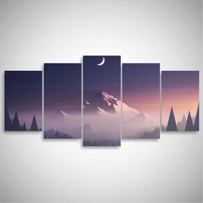 Quadro decorativo Natureza Minimalista Dimensões do Produto: Tamanho total do produto: 125x60 cm Comprimento x Altura 02 Peças menores: 25x40 cm 02 Peças Médias: 25x50 cm 01 Peça Central: 25x60 cm. Espaçamento entre as peças de 1 cm - Tamanho total com espaçamentos 129x60 cm. Espessura do produto - 9 mm