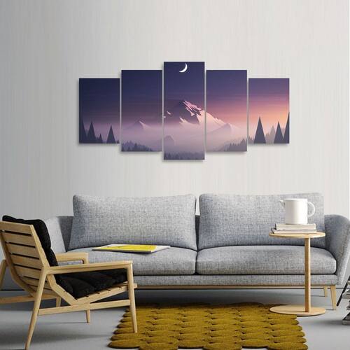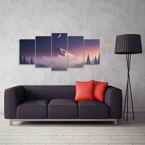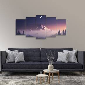 Quadro decorativo Natureza Minimalista Dimensões do Produto: Tamanho total do produto: 125x60 cm Comprimento x Altura 02 Peças menores: 25x40 cm 02 Peças Médias: 25x50 cm 01 Peça Central: 25x60 cm. Espaçamento entre as peças de 1 cm - Tamanho total com espaçamentos 129x60 cm. Espessura do produto - 9 mm