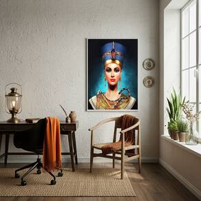 Quadro Decorativo Nefertiti Mulher Egípcia - 70x50cm - Cor: Moldura Branca