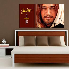 Deixe seu ambiente ainda mais agradável com o Trio de Quadros Decorativos John 3:16. Os quadros além de serem muito bonitos são de alta qualidade, dê adeus para as paredes vazias e monótonas. Os quadros decorativos são grandes aliados quando o assunto é decoração, suas cores irão trazer mais aconchego para a sua sala, quarto, escritório, ou qualquer outro ambiente. Fabricado em MDF 6mm e adesivo fosco de grande durabilidade, o quadro é composto por três peças que se complementam e totalizam a medida de 120 por 70 centímetros. Para deixar o mosaico perfeito em sua parede, é só deixar um espaço de 2cm entre uma peça e outra. Características: - Em MDF 6mm e adesivo fosco - Mosaico com três peças cortadas a laser - Acompanha fita dupla face - Dispensa uso de pregos Especificações: Marca: New Decor Modelo: John 3:16 Quantidade peças: 03 Material: MDF 6mm Impressão: Digital alta resolução Adesivo: Fosco Tamanho total AxL : 120 x 70 cm Dimensões unitárias AxL : 40 x 70 cm Fixação: Fita dupla face Obs.: Para higienização do quadro, utilize apenas um espanador, ou pano macio pouco umedecido em água. Não utilize produtos químicos. Marca: Não Informado