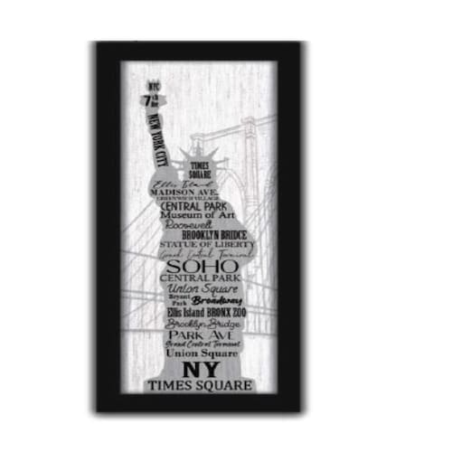 QUADRO DECORATIVO NEW YORK - ESTÁTUA DA LIBERDADE COM FRASES EM INGLÊS - 60CM - COM MOLDURA - IDEAL PARA SALA, CONSULTÓRIO, LAVABO, ESCRITÓRIO - CANVAS