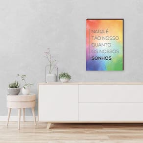 Quadro Decorativo Nosos Sonhos Colorido 50x70cmCaracterísticas Gerais do Produto: Benefícios do produto: Fabricados com materiais de alta qualidade, não desbotam, alem de fácil instalação.. Dimensões AxLxP CM : 70 X 50 X 3 Formato: Retangular Produzido em: MDF e Impressão vinílica em altíssima definição Cor acabamento: Colorido Garantia: Este produto possui garantia junto ao fabricante contra defeitos de fabricação Aplicação: ParedeAcompanha o produto: 01 Quadro 01 Kit instalaçãoGarantia: Este produto possui garantia contra defeitos de fabricação Marca: Meu Rodapé