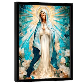 Quadro Decorativo Nossa Senhora Aparecida Branco e Azul Moldura Preta - 84x54cm -