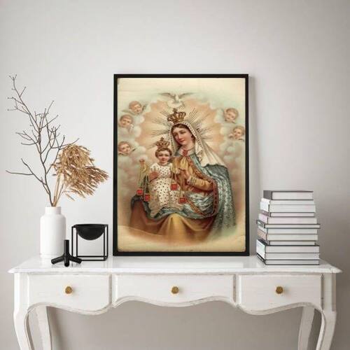 Quadro decorativo nossa senhora do carmo vintage 24x18cm - com vidro Moldura: madeira branca Informações do produto tire todas as suas dúvidas no descritivo abaixo: decoração para quarto, sala, cozinha, escritório, área gourmet e muito mais. Chega de paredes vazias medidas - cada peça tem 24x18cm a5 . Material do papel - papel fotográfico brilhante de altíssima resolução acabamento - todos os quadros são acompanhados de vidro para proteção da imagem. - moldura em madeira maciça na cor preta e pendurador . - os quadros são embalados de forma segura com plástico bolha com camada dupla de acordo com o tamanho dos quadros. - de 3 meses. Meu quadro chegou. Como posso fixá-lo Você precisa apenas de um martelo e um prego, pois os quadros já vão acompanhados de penduradores. Esta é a forma mais indicada. Como posso limpar meu quadro A limpeza é feita como um móvel comum da sua casa. Apenas um pano seco ou espanador são suficientes para tal