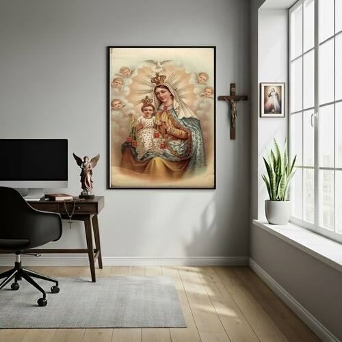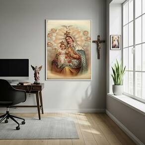 Quadro Decorativo Nossa Senhora Do Carmo Vintage - 70x50cm - Cor: Moldura Branca