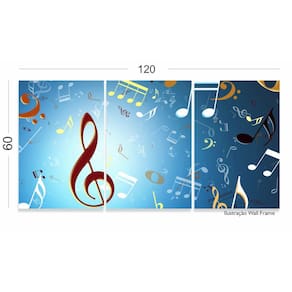 Quadro Decorativo Notas Musicais 120x60 3 peças