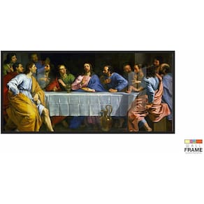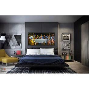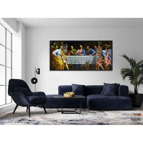 Quadro Decorativo Nova Santa Ceia Jesus 130x60 Moldura Preta 2x2