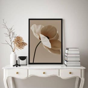 Quadro decorativo nuances bege - flor única 45x34cm Cor: moldura preta Informações do produto tire todas as suas dúvidas no descritivo abaixo: decoração para quarto, sala, cozinha, escritório, área gourmet e muito mais. Chega de paredes vazias. Medidas - cada peça tem 45x34cm a3 . Material do papel - papel fotográfico brilhante de altíssima resolução acabamento - todos os quadros são acompanhados de uma película de acetato para proteção da imagem. - os quadros são embalados de forma segura com plástico bolha com camada dupla de acordo com o tamanho dos quadros. - de 3 meses. Meu quadro chegou. Como posso fixá-lo Você precisa apenas de um martelo e um prego, pois os quadros já vão acompanhados de penduradores. Esta é a forma mais indicada. Caso prefira, você pode utilizar uma fita dupla face neste caso, sugerimos de alta qualidade para evitar que descole e seu quadro caia . Como posso limpar meu quadro A limpeza é feita como um móvel comum da sua casa. Apenas um pano seco ou espanador são suficientes para tal