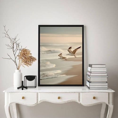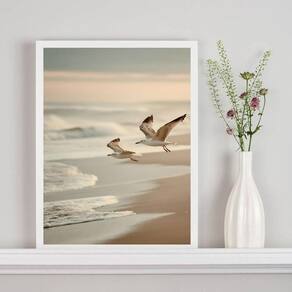Quadro decorativo nuances bege - praia pássaros 45x34cm Cor: moldura branca Informações do produto tire todas as suas dúvidas no descritivo abaixo: decoração para quarto, sala, cozinha, escritório, área gourmet e muito mais. Chega de paredes vazias. Medidas - cada peça tem 45x34cm a3 . Material do papel - papel fotográfico brilhante de altíssima resolução acabamento - todos os quadros são acompanhados de uma película de acetato para proteção da imagem. - os quadros são embalados de forma segura com plástico bolha com camada dupla de acordo com o tamanho dos quadros. - de 3 meses. Meu quadro chegou. Como posso fixá-lo Você precisa apenas de um martelo e um prego, pois os quadros já vão acompanhados de penduradores. Esta é a forma mais indicada. Caso prefira, você pode utilizar uma fita dupla face neste caso, sugerimos de alta qualidade para evitar que descole e seu quadro caia . Como posso limpar meu quadro A limpeza é feita como um móvel comum da sua casa. Apenas um pano seco ou espanador são suficientes para tal Marca: Não Informado Ean: 7901039746897