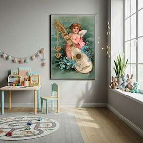 Quadro Decorativo O Anjo Cupido - 70x50cm - Cor: Moldura Branca