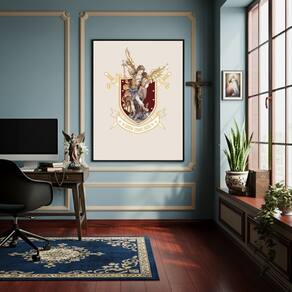 Quadro Decorativo O Escudo de São Miguel Arcanjo - 70x50cm - Cor: Moldura Branca