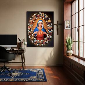 Quadro Decorativo O Imaculado Coração de Maria - 70x50cm - Cor: Moldura Preta