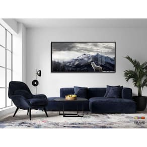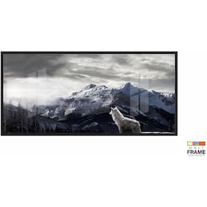 Quadro Decorativo O Lobo E A Montanha 130x60 Moldura Preta 2x2