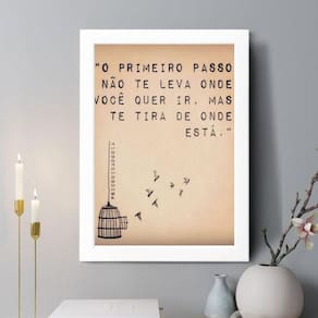 Quadro decorativo o primeiro passo 24x18cm - com vidro Cor: moldura preta Informações do produto tire todas as suas dúvidas no descritivo abaixo: decoração para quarto, sala, cozinha, escritório, área gourmet e muito mais. Chega de paredes vazias medidas - cada peça tem 24x18cm a5 . Material do papel - papel fotográfico brilhante de altíssima resolução acabamento - todos os quadros são acompanhados de vidro para proteção da imagem. - moldura em madeira maciça na cor preta ou branca conforme produto escolhido e pendurador . - os quadros são embalados de forma segura com plástico bolha com camada dupla de acordo com o tamanho dos quadros. Garantia - garantia de 3 meses. Meu quadro chegou. Como posso fixá-lo Você precisa apenas de um martelo e um prego, pois os quadros já vão acompanhados de penduradores. Esta é a forma mais indicada. Como posso limpar meu quadro A limpeza é feita como um móvel comum da sua casa. Apenas um pano seco ou espanador são suficientes para tal