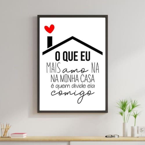 Quadro Decorativo O Que Eu Mais Amo Na Minha Casa - Tamanho: A4 (20 x 30) / Acabamento: Película de acetato / Moldura: Madeira preta