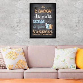 Quadro decorativo o sabor da vida depende de quem tempera 34x23cm - moldura branca Tamanho: a4 20 x 30 Acabamento: película de acetato Moldura: madeira branca Informações do produto Tire todas as suas dúvidas no descritivo abaixo: Decoração para quarto, sala, cozinha, escritório, área gourmet e muito mais. Chega de paredes vazias Medidas - cada peça tem 34x23cm a4 . Material do papel - papel fotográfico brilhante de altíssima resolução Acabamento - todos os quadros são acompanhados de uma película de acetato para proteção da imagem. - moldura em madeira maciça na cor branca e pendurador móvel que pode ser retirado facilmente caso deseje fixar com fita dupla face. - os quadros são embalados de forma segura com plástico bolha com camada dupla de acordo com o tamanho dos quadros. - de 3 meses Meu quadro chegou. Como posso fixá-lo Você precisa apenas de um martelo e um prego, pois os quadros já vão acompanhados de penduradores. Esta é a forma mais indicada. Caso prefira, você pode utilizar uma fita dupla face neste caso, sugerimos de alta qualidade para evitar que descole e seu quadro caia . Como posso limpar meu quadro A limpeza é feita como um móvel comum da sua casa. Apenas um pano seco ou espanador são suficientes para tal Marca: Não Informado