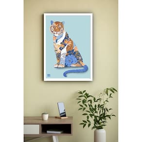 Quadro Decorativo O Tigre da Água - 70x50cm - Cor: Moldura Preta