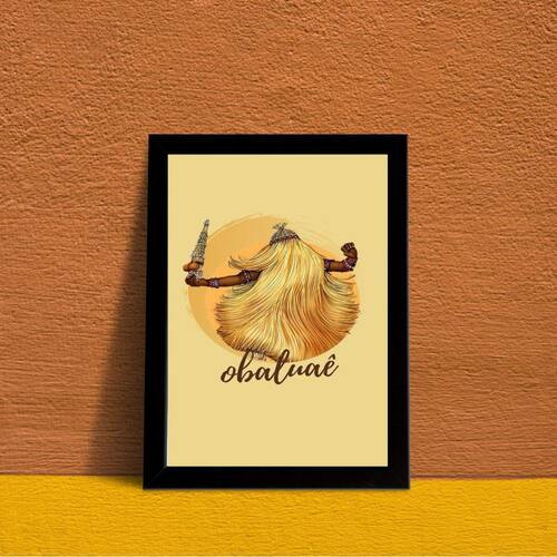 O Quadro Decorativo Obaluaê possui moldura em madeira branca, que confere um visual elegante e moderno. Além disso, ele é acompanhado de vidro para proteção da imagem, garantindo durabilidade e preservando a qualidade da estampa.