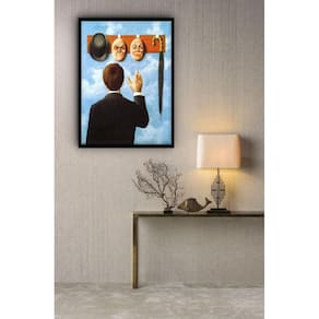 Quadro decorativo obra rené magritte faces - 70x50cm Cor: moldura preta Informações do produto tire todas as suas dúvidas no descritivo abaixo: decoração para quarto, sala, cozinha, escritório, área gourmet e muito mais. Chega de paredes vazias medidas - cada peça tem 70x50cm . Material do papel - papel fotográfico brilhante de altíssima resolução acabamento - todos os quadros são acompanhados de vidro para proteção da imagem. - moldura em madeira maciça na cor preta ou branca conforme produto escolhido e pendurador. - os quadros são embalados de forma segura com plástico bolha com camada dupla de acordo com o tamanho dos quadros. - de 3 meses. Meu quadro chegou. Como posso fixá-lo Você precisa apenas de um martelo e um prego, pois os quadros já vão acompanhados de penduradores. Esta é a forma mais indicada. Como posso limpar meu quadro A limpeza é feita como um móvel comum da sua casa. Apenas um pano seco ou espanador são suficientes para tal