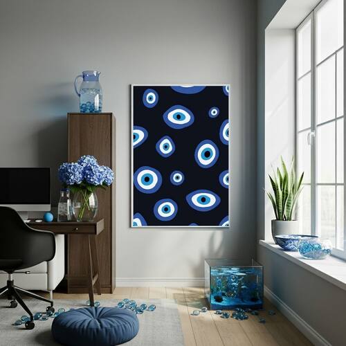 Quadro Decorativo Olho Grego Fundo Preto - 70x50cm - Cor: Moldura Branca