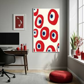 Quadro Decorativo Olhos Gregos Vermelhos - 70x50cm - Cor: Moldura Branca