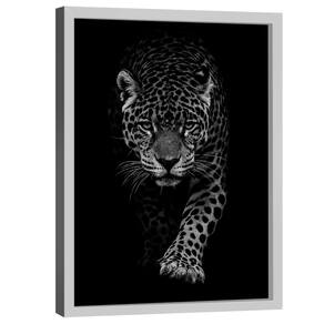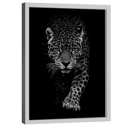 Quadro Decorativo Onça no Preto Moldura Branca - 150x100cm -