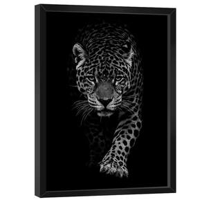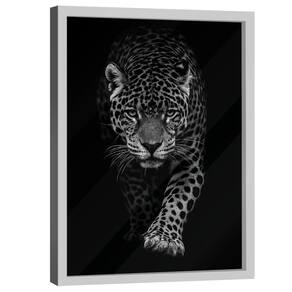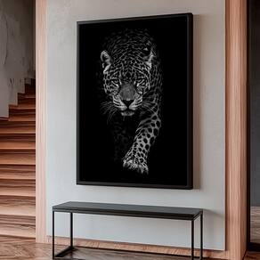 Quadro Decorativo Onça no Preto Moldura Branca e Vidro - 180x105cm -