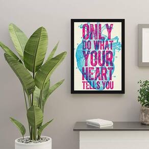 Quadro decorativo only do what your heart tells you 34x23cm - moldura branca Tamanho: a4 20 x 30 Acabamento: película de acetato Moldura: madeira branca Informações do produto Tire todas as suas dúvidas no descritivo abaixo: Decoração para quarto, sala, cozinha, escritório, área gourmet e muito mais. Chega de paredes vazias Medidas - cada peça tem 34x23cm a4 . Material do papel - papel fotográfico brilhante de altíssima resolução Acabamento - todos os quadros são acompanhados de uma película de acetato para proteção da imagem. - moldura em madeira maciça na cor branca e pendurador móvel que pode ser retirado facilmente caso deseje fixar com fita dupla face. - os quadros são embalados de forma segura com plástico bolha com camada dupla de acordo com o tamanho dos quadros. - de 3 meses Meu quadro chegou. Como posso fixá-lo Você precisa apenas de um martelo e um prego, pois os quadros já vão acompanhados de penduradores. Esta é a forma mais indicada. Caso prefira, você pode utilizar uma fita dupla face neste caso, sugerimos de alta qualidade para evitar que descole e seu quadro caia . Como posso limpar meu quadro A limpeza é feita como um móvel comum da sua casa. Apenas um pano seco ou espanador são suficientes para tal Marca: Não Informado