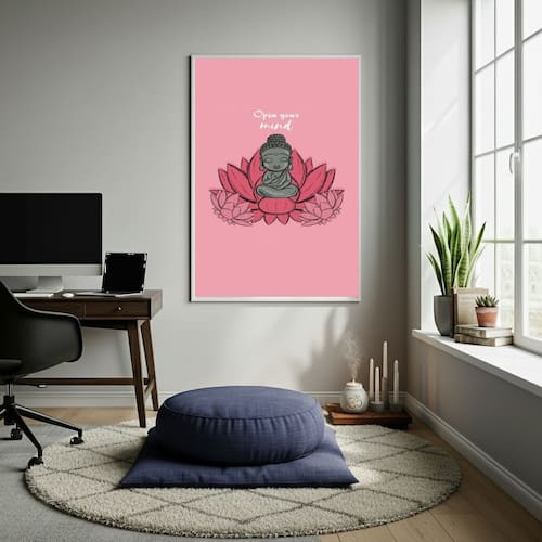 Quadro Decorativo Open Your Mind - Buda - 70x50cm - Cor: Moldura Branca