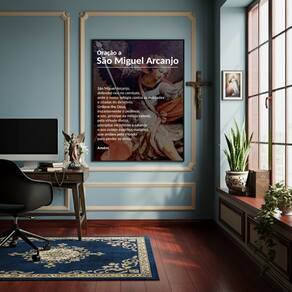 Quadro Decorativo Oração a São Miguel Arcanjo - 70x50cm - Cor: Moldura Branca