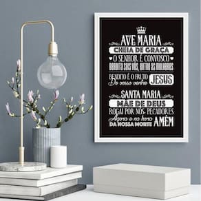 Quadro decorativo oração ave maria- preto e branco 33x24cm - com vidro Moldura: madeira preta Informações do produto tire todas as suas dúvidas no descritivo abaixo: decoração para quarto, sala, cozinha, escritório, área gourmet e muito mais. Chega de paredes vazias medidas - cada peça tem 33x24cm a4 . Material do papel - papel fotográfico brilhante de altíssima resolução acabamento - todos os quadros são acompanhados de vidro para proteção da imagem. - moldura em madeira maciça na cor preta ou branca conforme produto escolhido e pendurador . - os quadros são embalados de forma segura com plástico bolha com camada dupla de acordo com o tamanho dos quadros. Garantia - garantia de 3 meses. Meu quadro chegou. Como posso fixá-lo Você precisa apenas de um martelo e um prego, pois os quadros já vão acompanhados de penduradores. Esta é a forma mais indicada. Como posso limpar meu quadro A limpeza é feita como um móvel comum da sua casa. Apenas um pano seco ou espanador são suficientes para tal Ean: 7893207972767