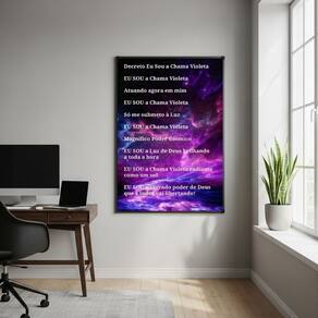 Quadro Decorativo Oração Chama Violeta - 70x50cm - Cor: Moldura Preta
