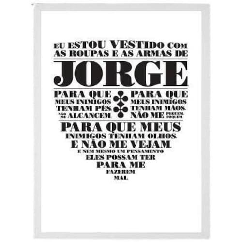 O Quadro Decorativo Oração De São Jorge 24 x 18 Cm A5 é perfeito para a decorar o seu ambiente de forma moderna e charmosa. O quadro é fácil de instalar pois vai acompanhado de pendurador e simples de limpar, apenas um pano seco ou espanador é suficiente para manter o seu quadro conservado. Características: - O papel fotográfico possui alta resolução - Acompanha vidro para proteção da imagem - Fácil de instalar Especificações Marca: Quadros On-Line Temática do quadro: tema Modelo: Oração De São Jorge Material do papel: Fotográfico brilhante Material da moldura: Madeira Acompanha moldura: Sim Acompanha vidro: Sim Acompanha pendurador: Sim Cor da moldura: Branca Medidas: 24 x 18 cm : 3 meses Itens inclusos 01 Quadro Decorativo Oração De São Jorge 24 x 18 Cm Sobre a Quadros On-Line Criada há mais de 30 anos em Belo Horizonte, a Quadros On-Line é uma referência na cidade, sempre prezando a criação de produtos de alta qualidade e excelência no atendimento. Além dos artigos decorativos, confecciona e comercializa obras de arte também.