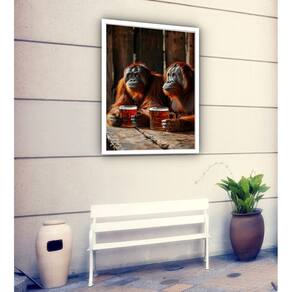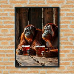 Quadro Decorativo Orangotangos Tomando Cerveja - 70x50cm - Cor: Moldura Preta