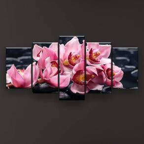 Quadro Decorativo Orquídea Fundo Preto 129x61 Sala Quarto