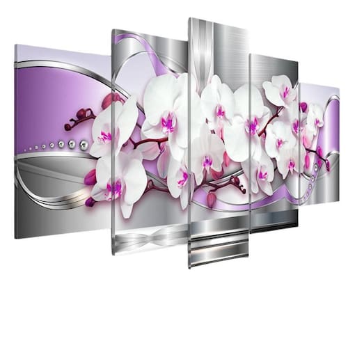 Especificações Técnicas: Produto: Quadro decorativo Quantidade: 5 peças Material: Madeira e adesivo Tamanho total CxA : 115 x 60 cm Tema: Orquídeas Branca e Rosa Ideal para: oficinas, escritórios, sala, hall e demais ambientes Conteúdo da embalagem: 1 quadro composto por 5 peças