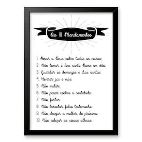 Quadro decorativo os 10 mandamentos 33x24cm Cor: moldura branca Informações do produto tire todas as suas dúvidas no descritivo abaixo: decoração para quarto, sala, cozinha, escritório, área gourmet e muito mais. Chega de paredes vazias medidas - cada peça tem 33x24cm a4 . Material do papel - papel fotográfico brilhante de altíssima resolução acabamento - todos os quadros são acompanhados de uma película de acetato para proteção da imagem. - os quadros são embalados de forma segura com plástico bolha com camada dupla de acordo com o tamanho dos quadros. - de 3 meses. Meu quadro chegou. Como posso fixá-lo Você precisa apenas de um martelo e um prego, pois os quadros já vão acompanhados de penduradores. Esta é a forma mais indicada. Caso prefira, você pode utilizar uma fita dupla face neste caso, sugerimos de alta qualidade para evitar que descole e seu quadro caia . Como posso limpar meu quadro A limpeza é feita como um móvel comum da sua casa. Apenas um pano seco ou espanador são suficientes para tal Marca: Não Informado