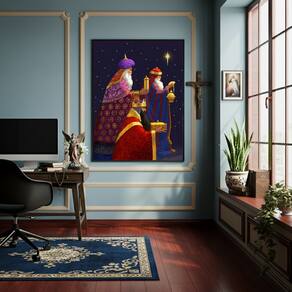 Quadro Decorativo Os Três Reis Magos do Natal - 70x50cm - Cor: Moldura Branca